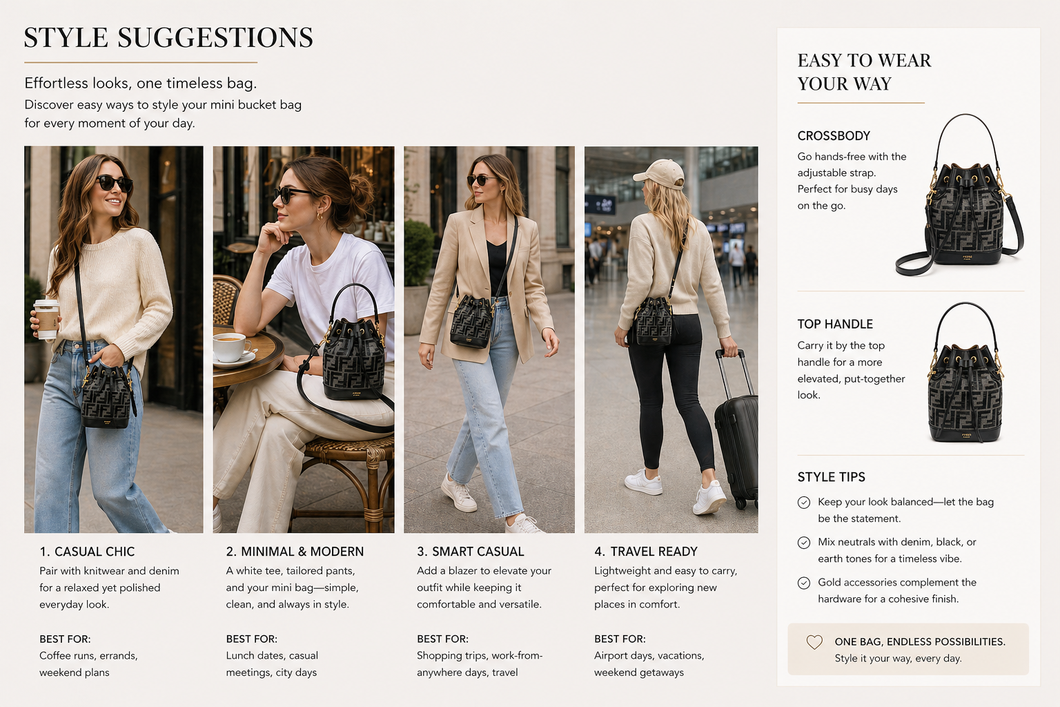 Elevate your everyday look with this timeless mini bucket bag designed for modern elegance.